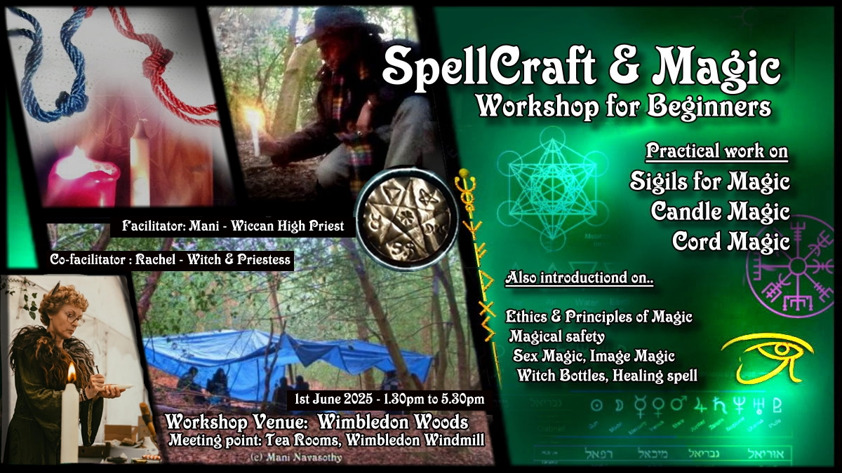 Learn use of sigils & several methods in spellcraft & magic; Practical Candle magic & Cord magic, with a ritual in woods; cafe nearby.